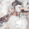 Fototapeta zobrazuje červené a bílé květy visící ze zelených stonků. Pozadí má texturovaný, popraskaný vzhled barvy v šedé a bílé, což mu dodává rustikální a starý vzhled. Květiny jsou ilustrovány s důrazem na složité detaily a živé barvy, což vytváří výrazný kontrast na tlumeném pozadí.