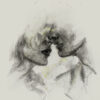 Na jemném pozadí je scenérie plná měkkých, nadýchaných bílých mraků. Mezi nimi se vznáší několik roztomilých zajíčků. Jejich srst je světlé barvy. Každý zajíček vypadá, jako by právě na okamžik vyskočil do oblak a díval se na svět zvědavě a radostně.